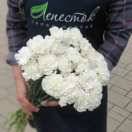Бархатный цилиндр из голубых диантусов, розовых пионов и ароматной маттиолы
