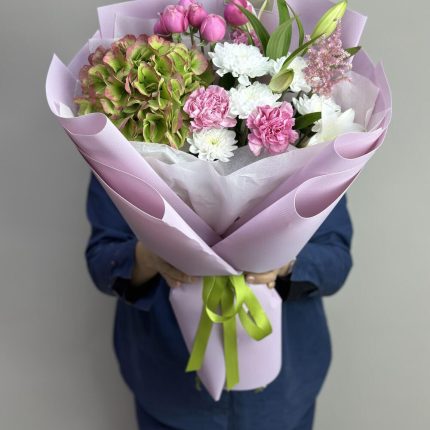 С чистого листа – Композиция с лилиями, пионовидными розами и пионами