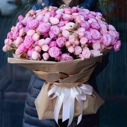 Цветы в коробке с пион розами,сиренью,ранункулюсами,эустомой,тюльпанами,матиолой,пионовидными кустовыми розами