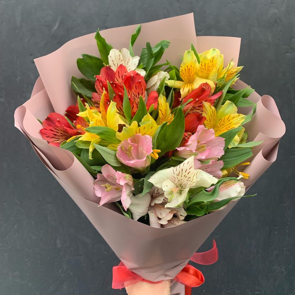 Букет из 9 разноцветных альстромерий в стильной упаковке