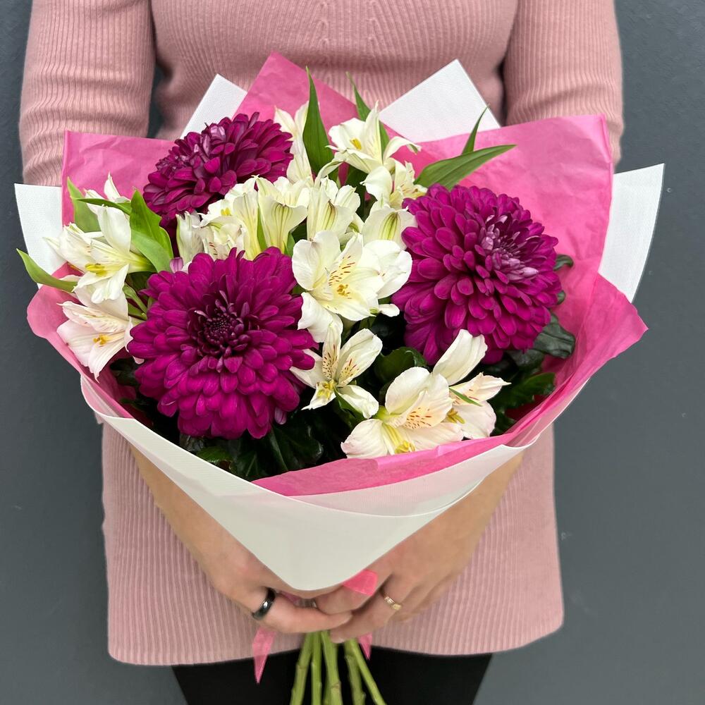Букет из альстромерии с хризантемой