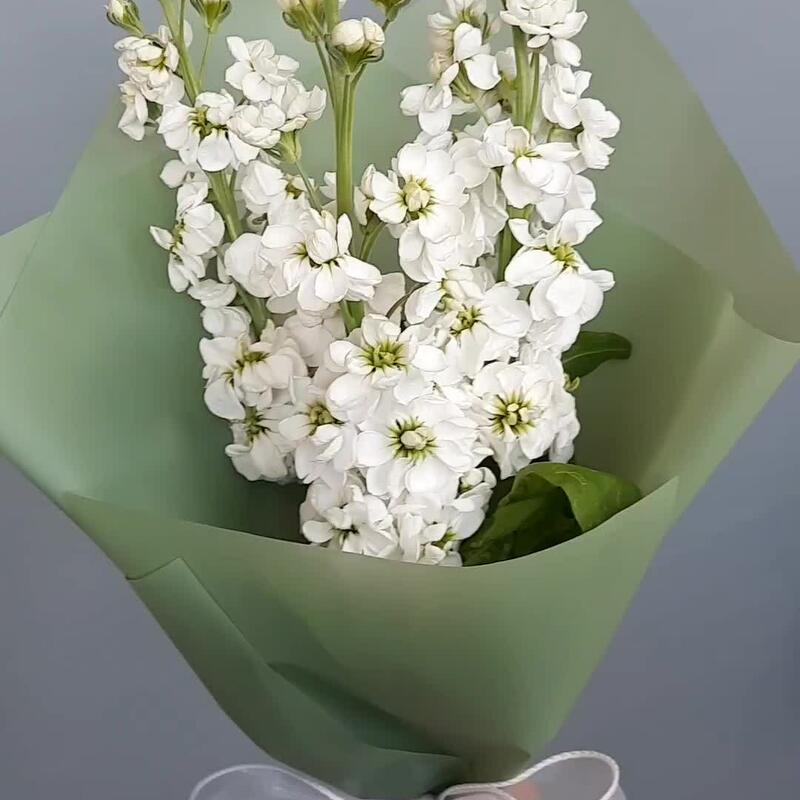 Упаковка дизайнерская – 2 шт.Лента органза – 2 шт.Маттиола белая – 3 шт.