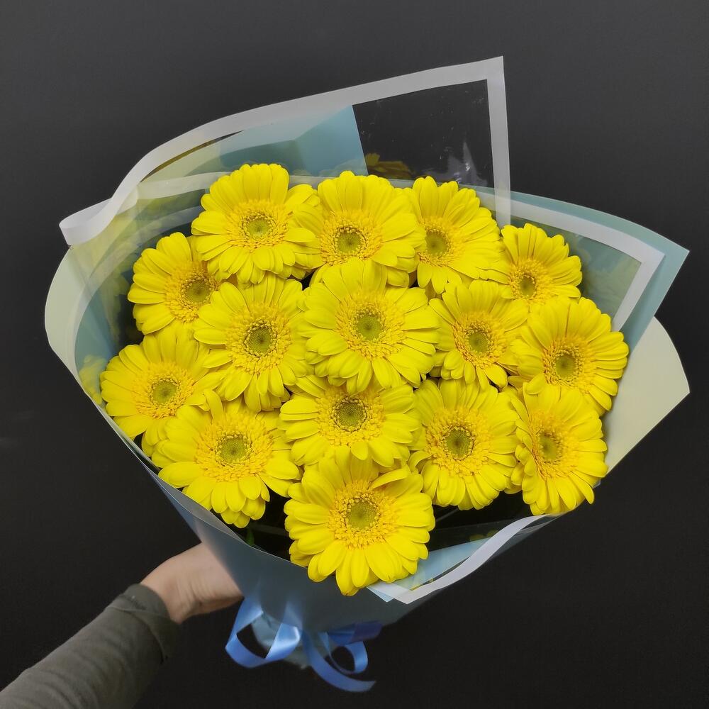 Гербера – 15 шт.Упаковка дизайнерская – 4 шт.