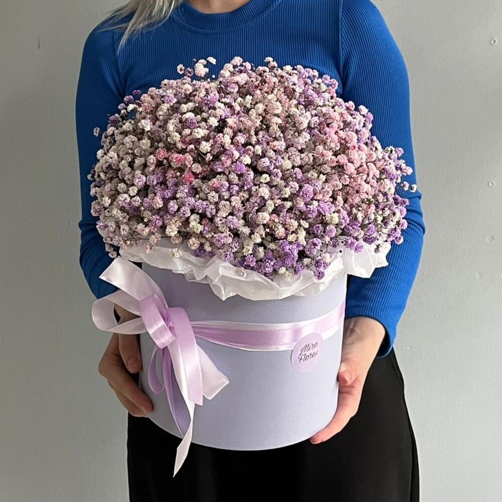 Цветы в коробке облако нежной гипсофилы