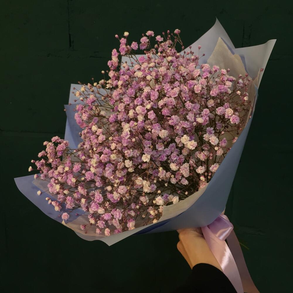 «Лавандовое созвездие» Букет из розы, гвоздики, статица и хлопка