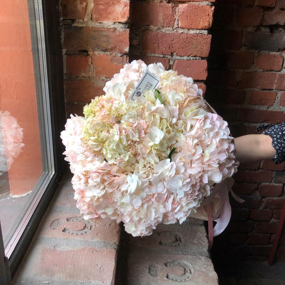Красивый букет из 7 нежно-розовых гортензий “Суоранда”