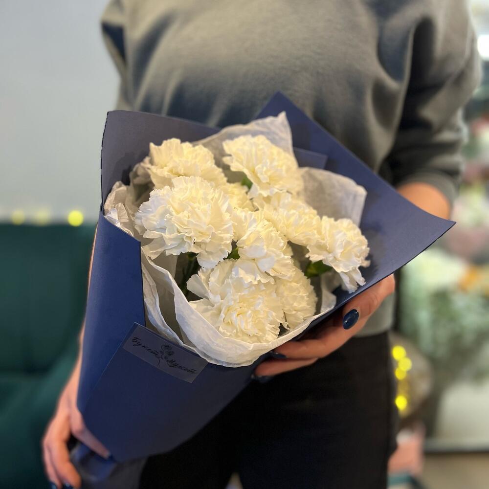Диантус белый – 9 шт.Тишью – 1 шт.Фоамиран (упаковка) – 1 шт.Лента атласная – 1 шт.