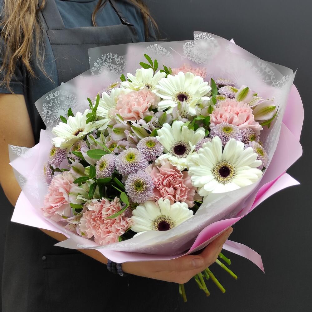 Категории: Альстромерии, Гвоздики, Герберы