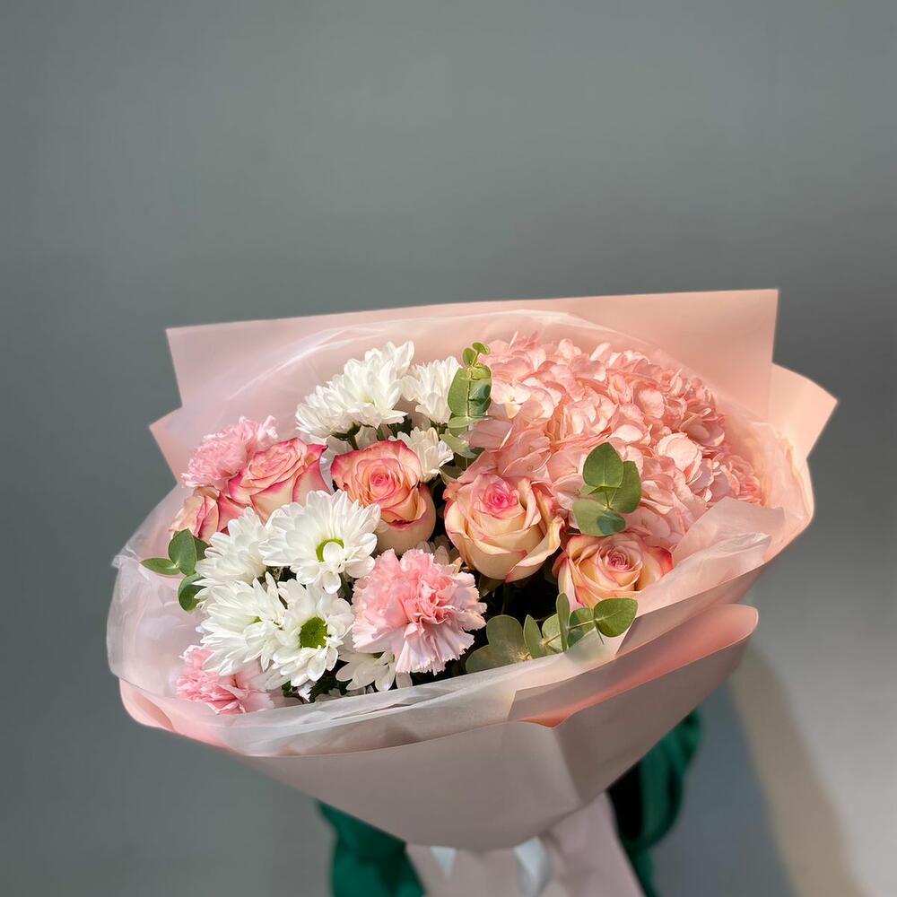 Гвоздики, Пионовидные розы, Розы