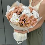 Букет Дуэт из персиковой и белой ромашковой хризантемы