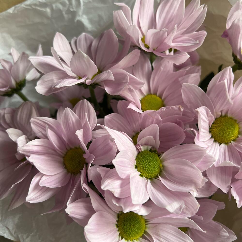 Хризантема кустовая – 3 шт.Лента атласная – 2 шт.Упаковка дизайнерская – 2 шт.