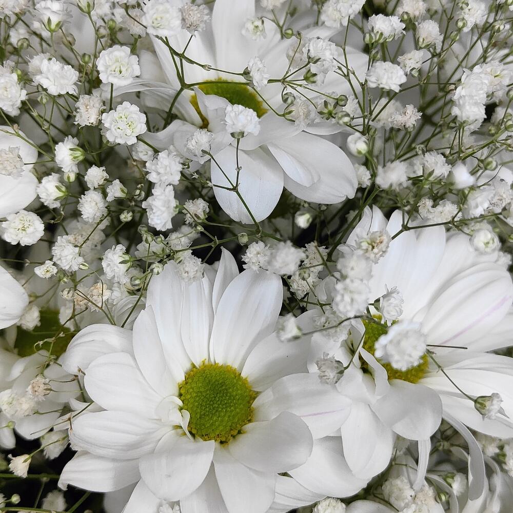 Букет из белоснежных ромашек и воздушной гипсофилы “Ромашки в снегу”