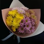 Хризантема голландия – 5 шт. Открыточка с вашими пожеланиями – 1 шт. Дизайнерская упаковка – 2 шт. инструкция по уходу за цветами – 1 шт.