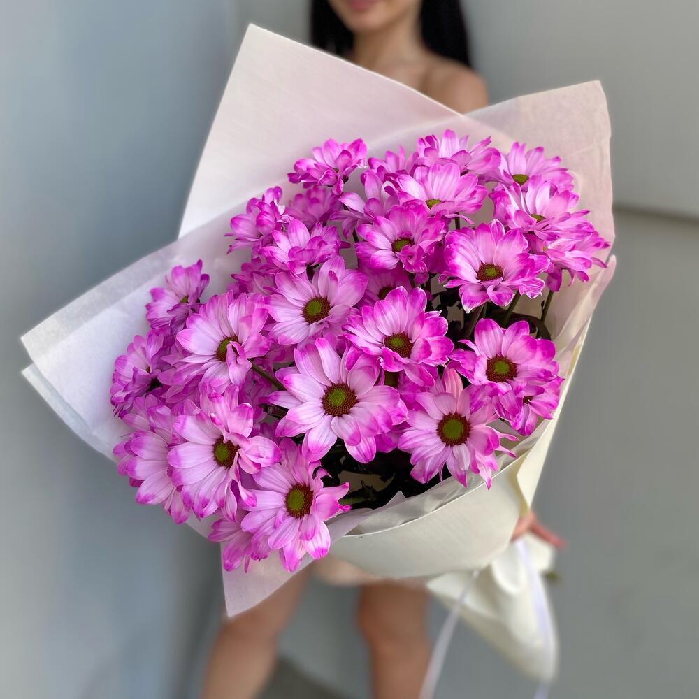 Лента атласная – 2 шт.Тишью – 2 шт.Хризантема кустовая ромашка – 5 шт.Фоамиран (упаковка) – 1 шт.