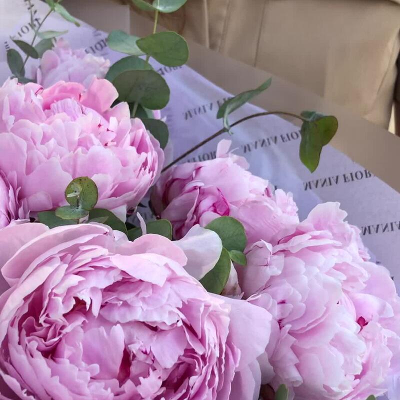 Эвкалипт – 2 шт.Подарочная упаковка – 1 шт.Средство для продления жизни цветов – 1 шт.пионы sarah bernhardt – 15 шт.
