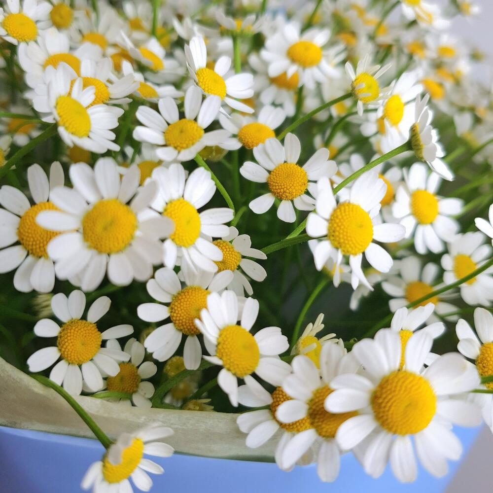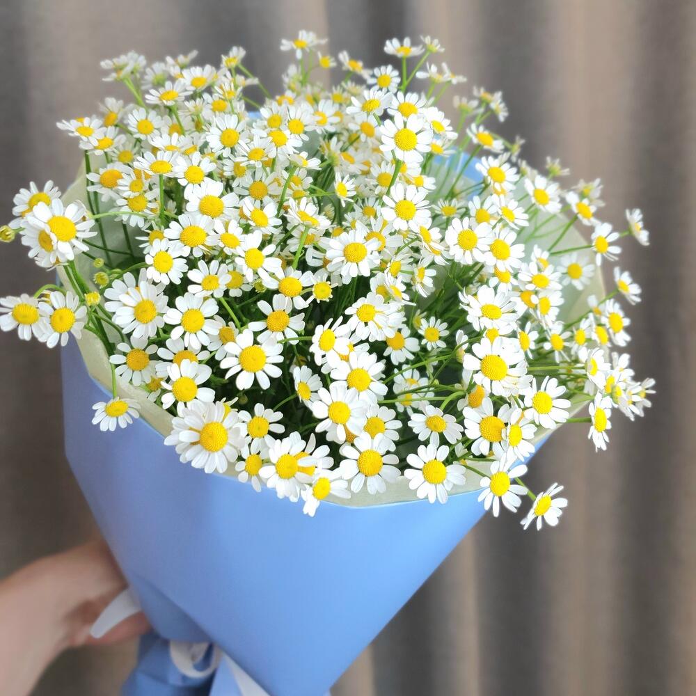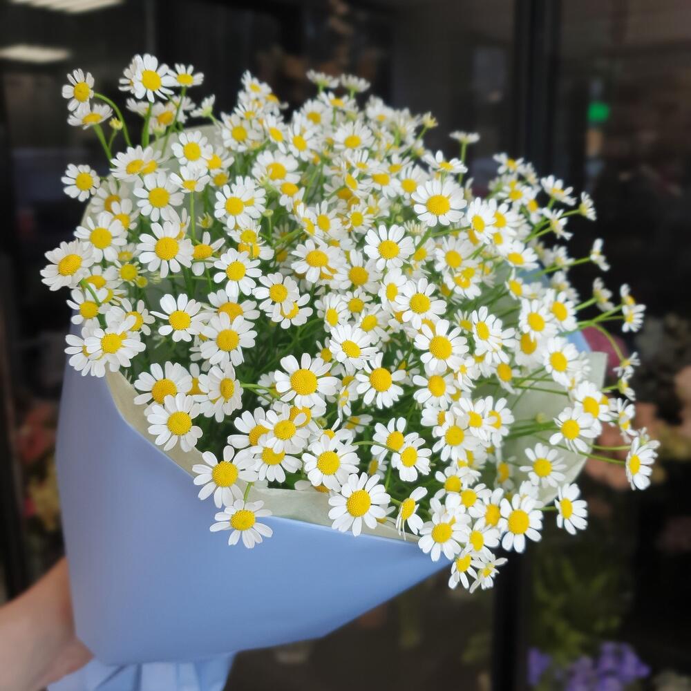 Упаковка дизайнерская – 2 шт.Матрикария (Ромашка Камила) – 10 шт.Лимониум – 1 шт.