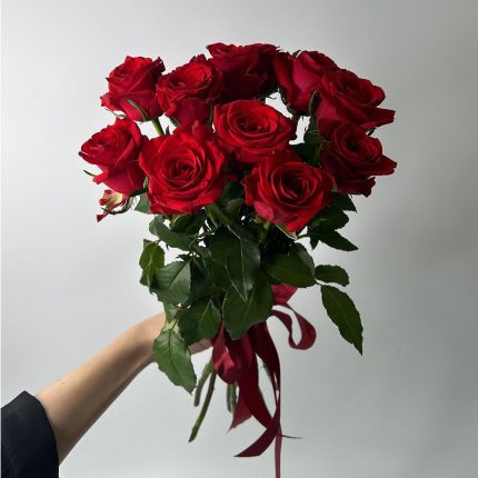 Атласная лента – 1 шт. Роза Джумилия – 15 шт.