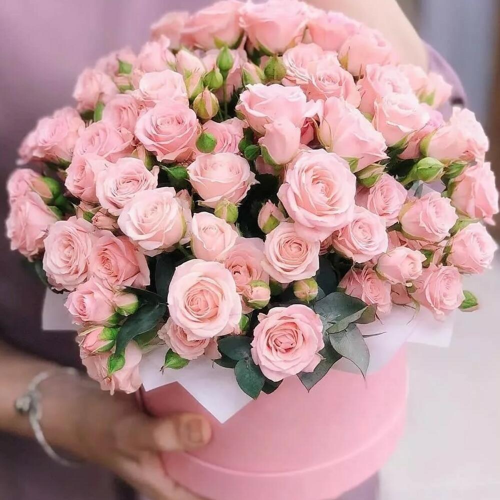 Кустовая роза – 15 шт.Шляпная коробка – 1 шт.