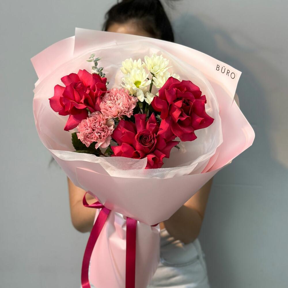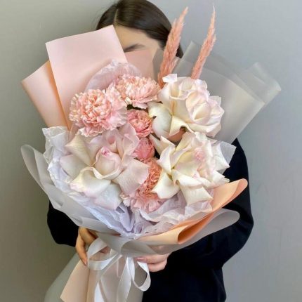 Гвоздики, Кустовые розы, Пионовидные розы, Розы