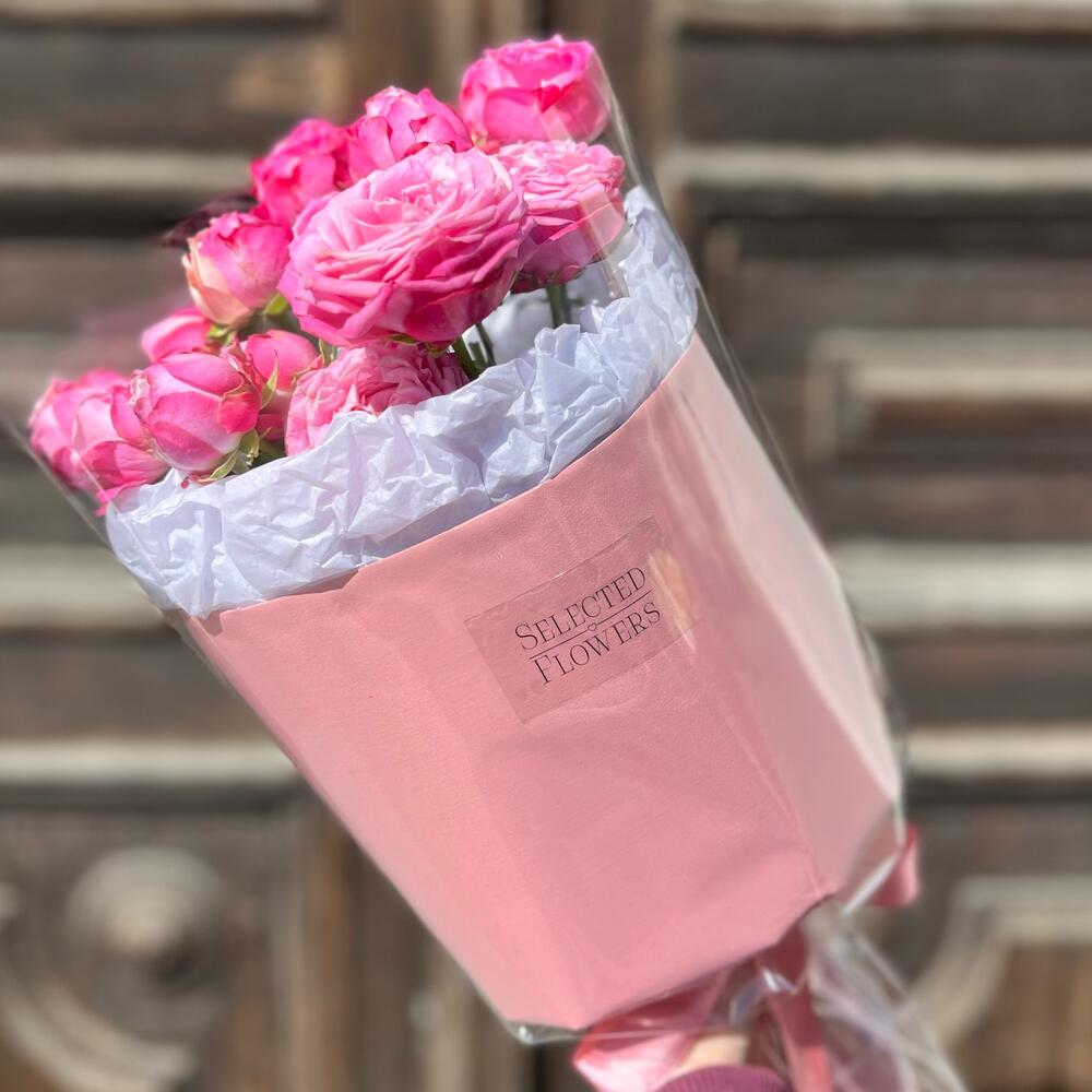 Кустовые розы розовые