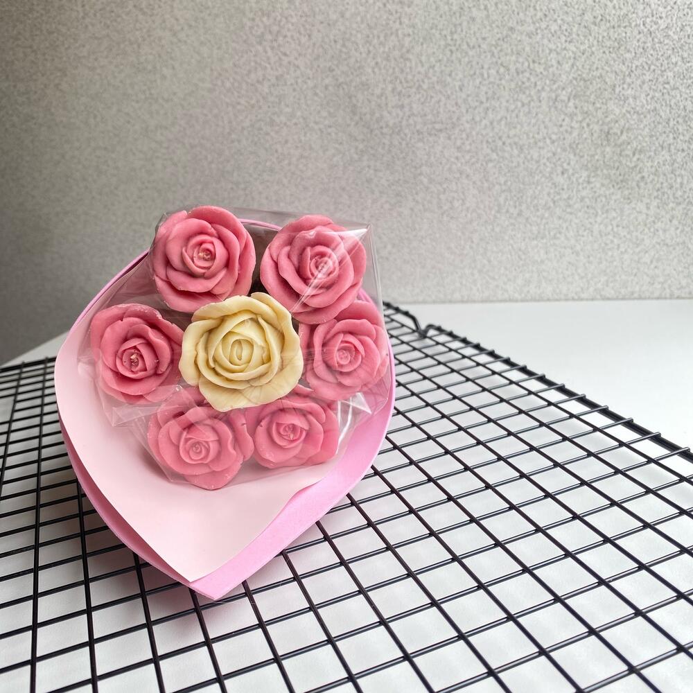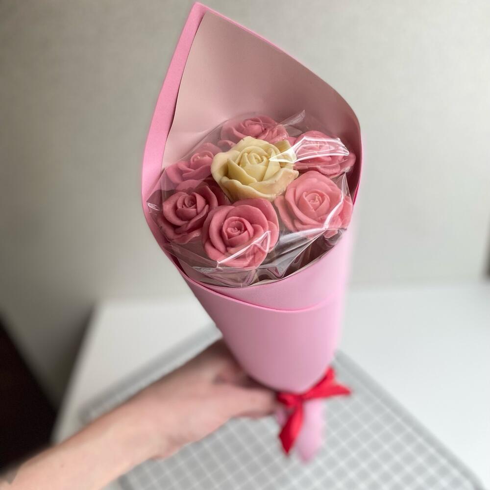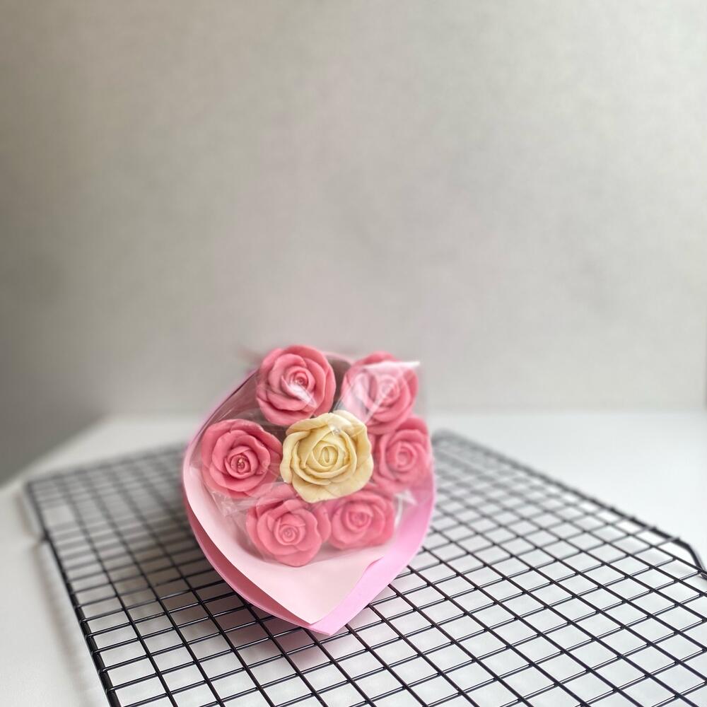 мини роза розовая – 6 шт.букетная роза – 1 шт.
