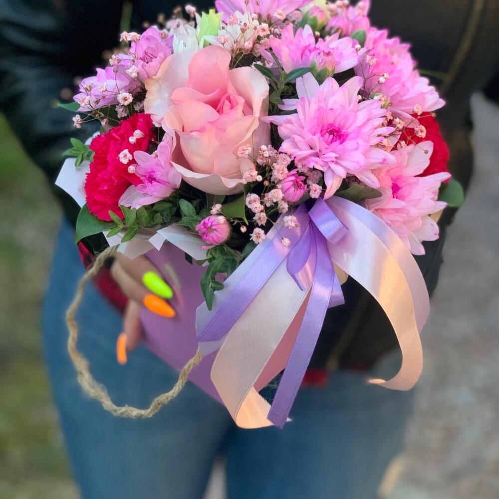 Цветы в коробочке розовой