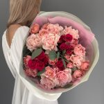 Гвоздики, Кустовые розы, Пионовидные розы, Розы