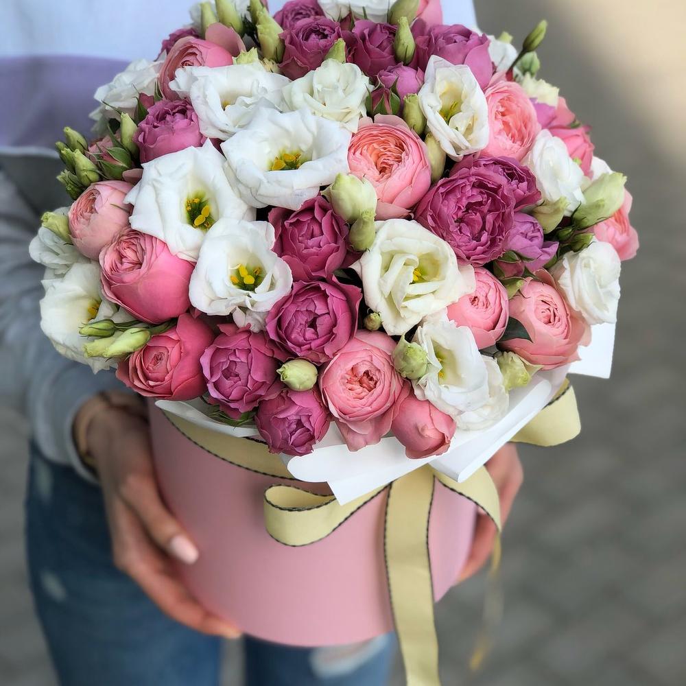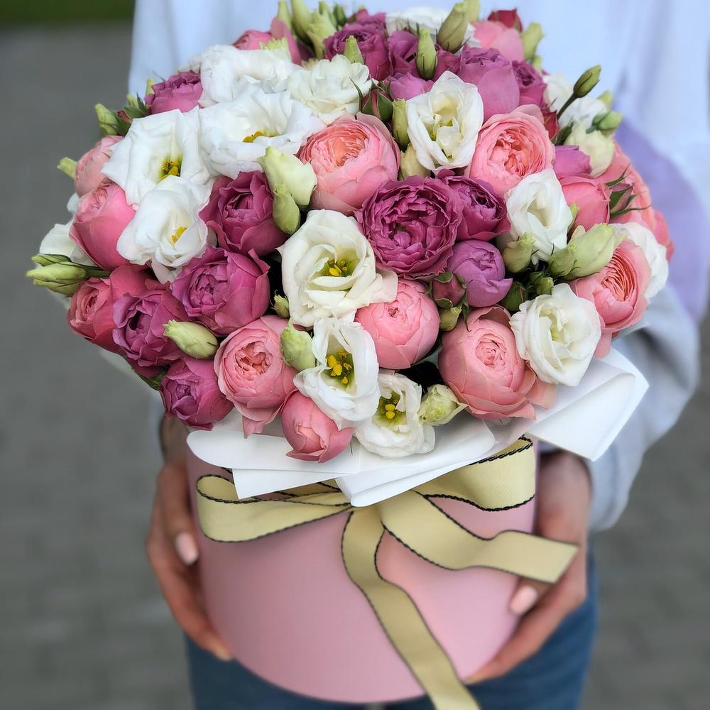 Коробка из пионовидных роз и эустомы!
