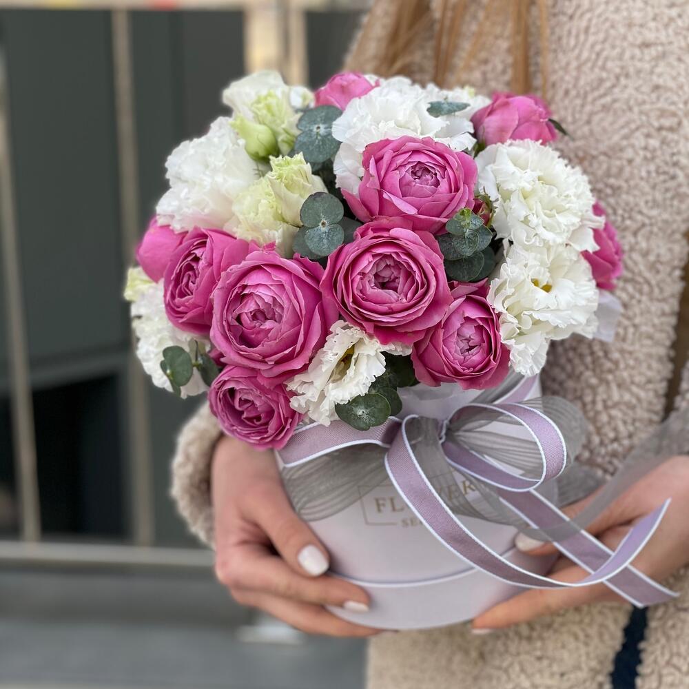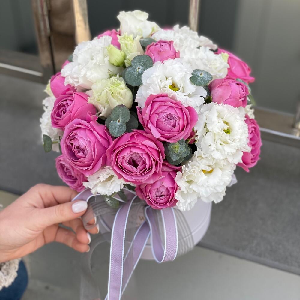 Коробка из пионовидной розы Misty Bables и эустомы!