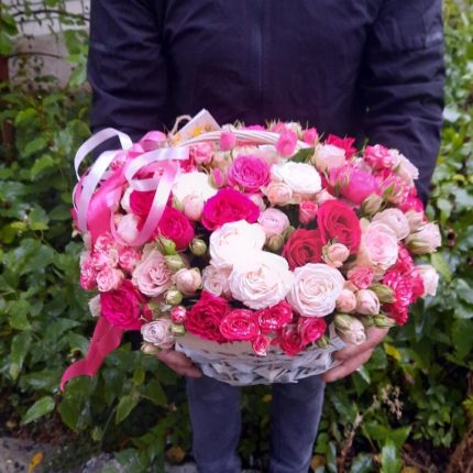 Корзина плетеная – 1 шт. розы голландские – 151 шт.
