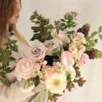 Круглый розовый букет с ранункулусами