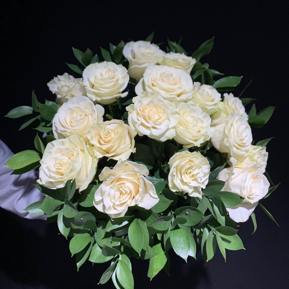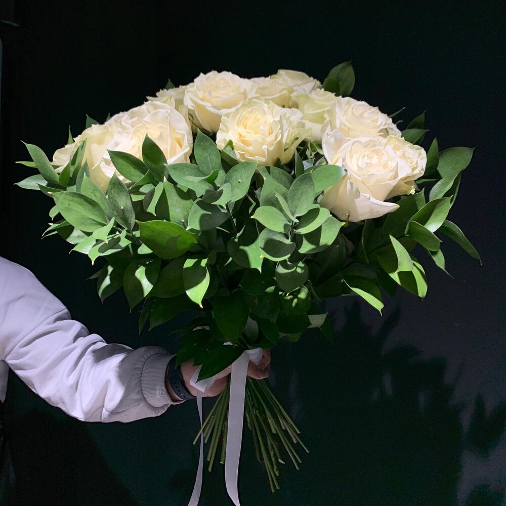 Рускус – 11 шт. розы – 15 шт.