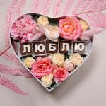 “Сладкое сердце ” – цветочная композиция с сладостями в коробке “Сердце”