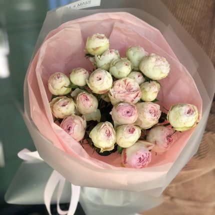 15 пионовидных кустовых роз в букете