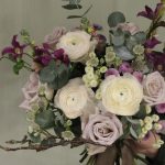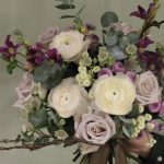 Ранункулюс – 3 шт.Клематис – 2 шт.Тубероза – 2 шт.Маттиола – 3 шт.Астранция – 2 шт.Роза сортовая – 5 шт.Сантини – 5 шт.Ветки – 2 шт.Эвкалипт – 5 шт.