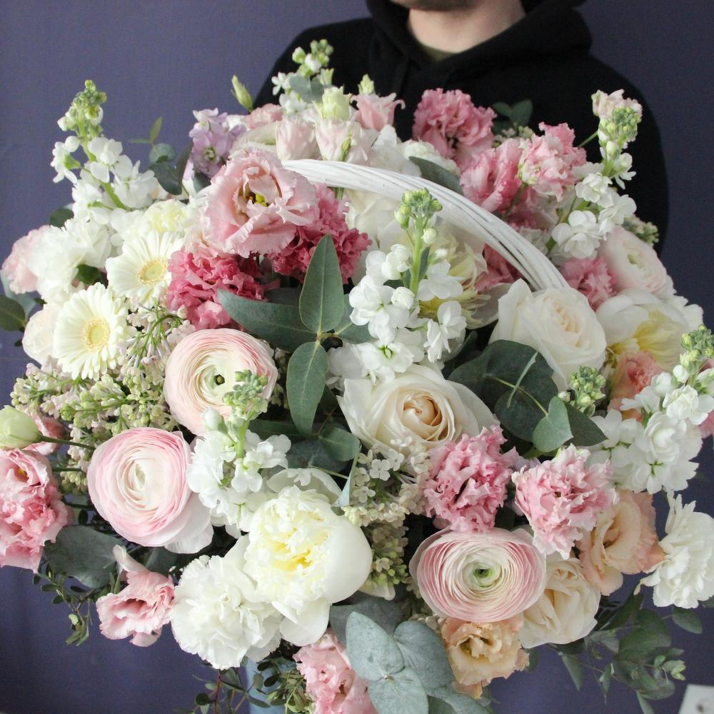 В самое сердце – Корзина с пионами, ранункулюсами, сиренью