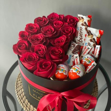 Розы 15 шт со сладостями