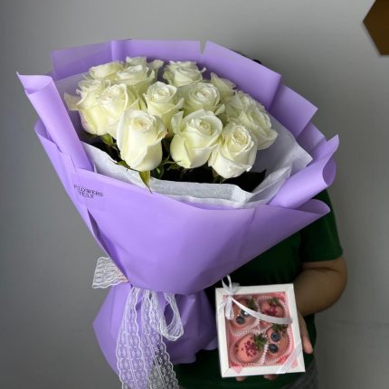 15 роз и клубника в шоколаде